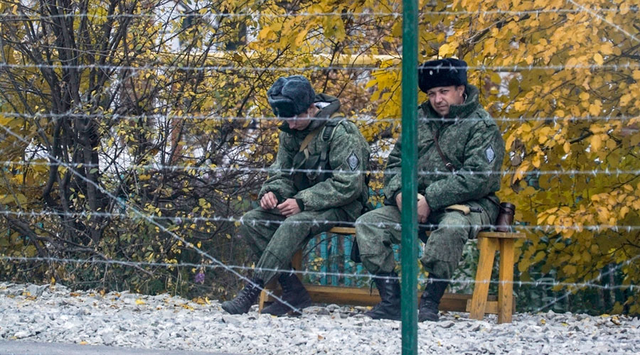 Забор из колючей проволоки установлен в Меловом на границе Украины и России